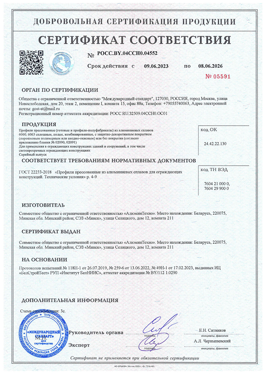 Сертификат о соответствии Alutech