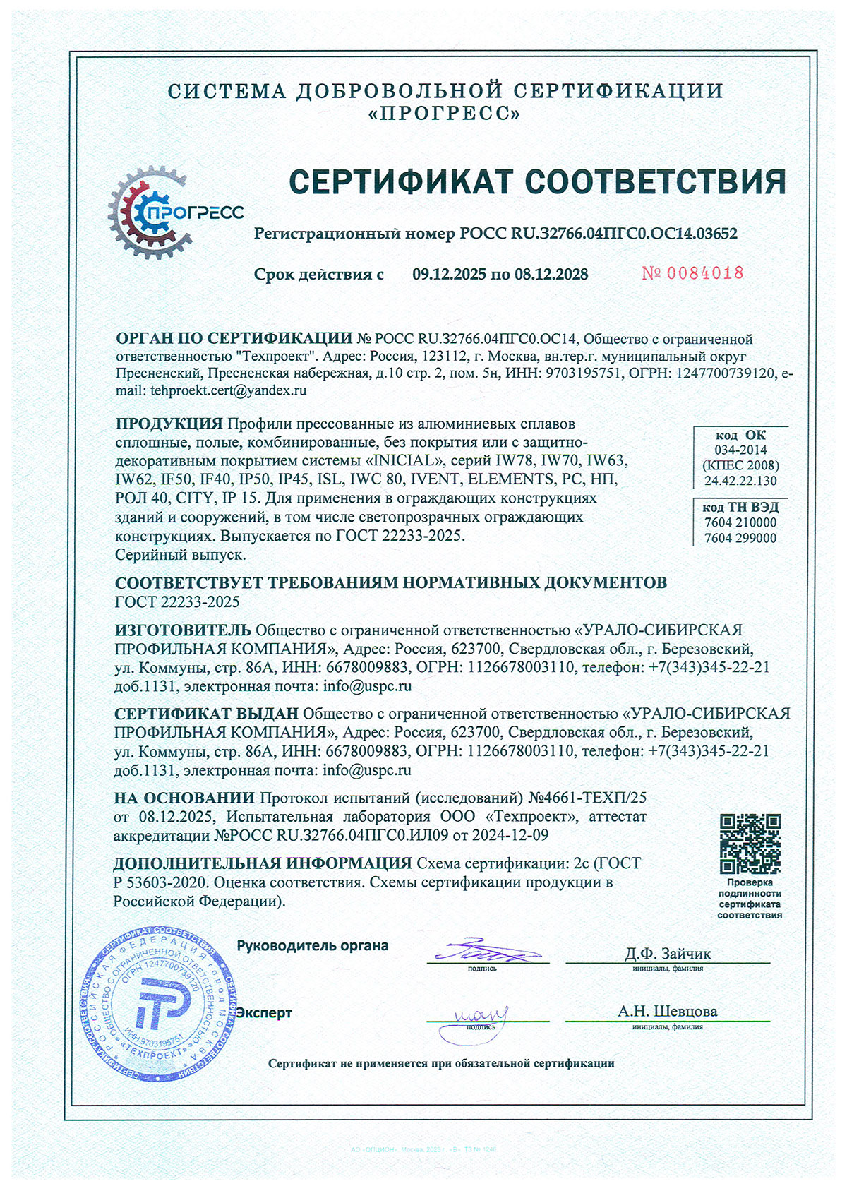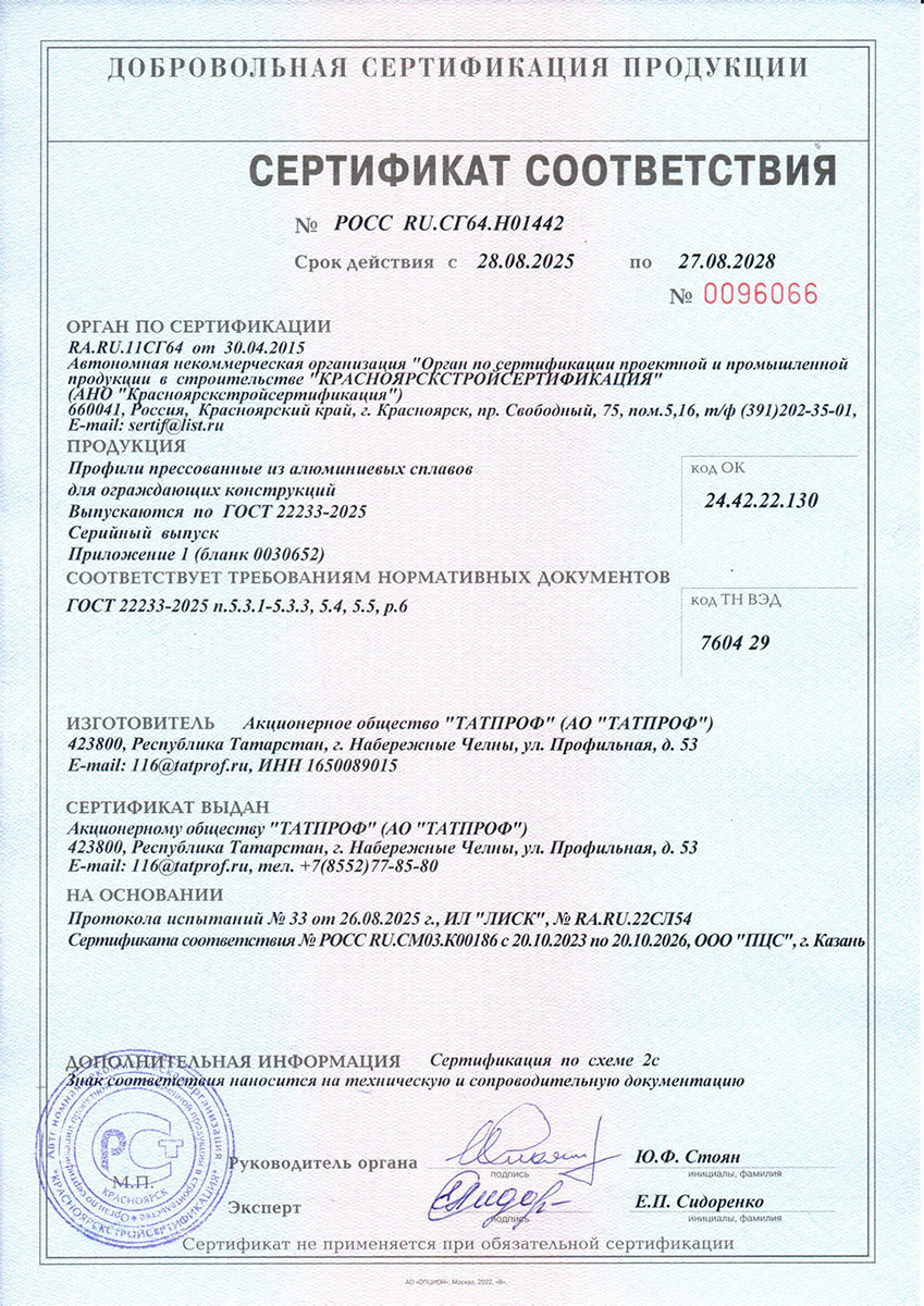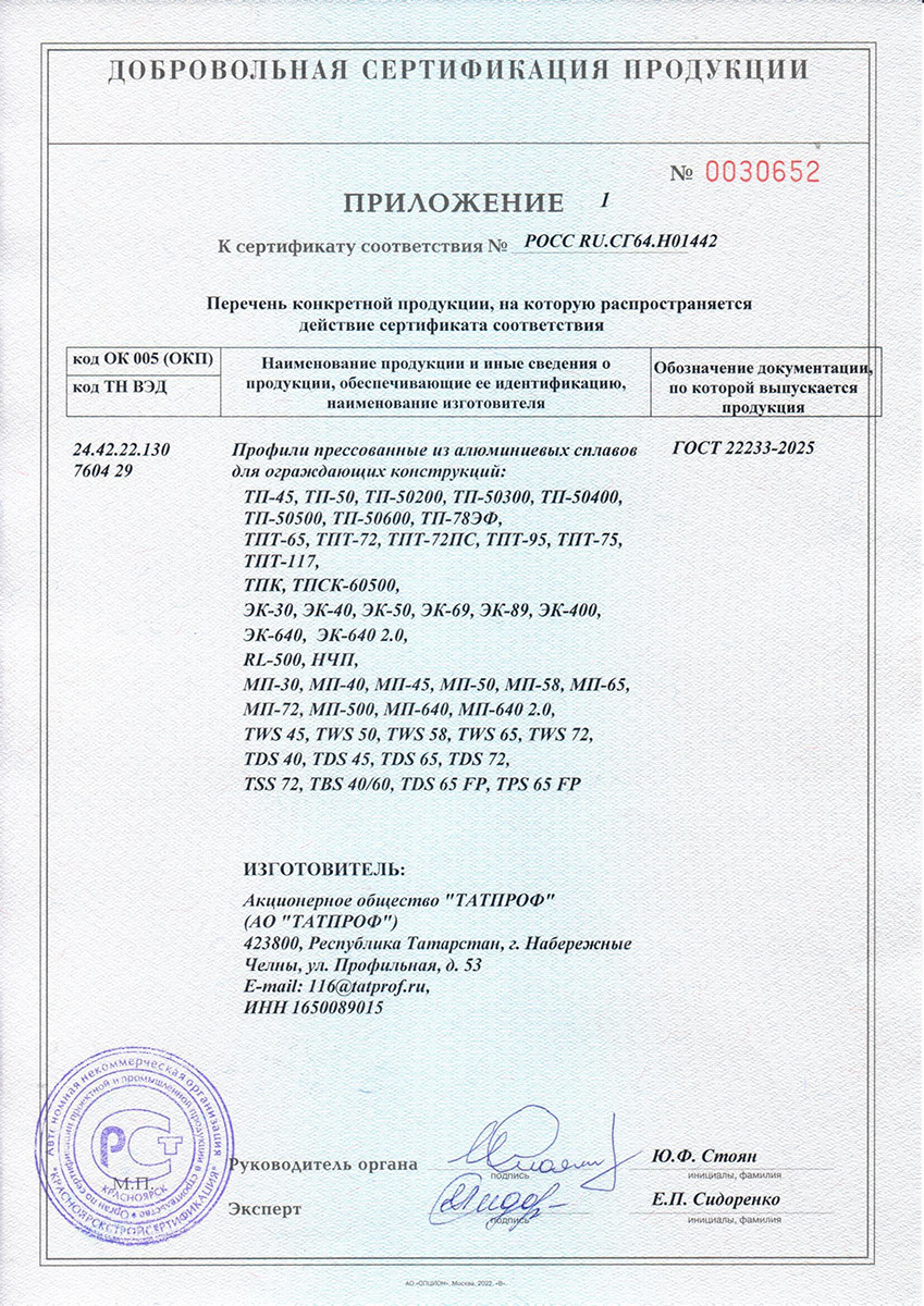 Сертификаты о соответствии Татпроф