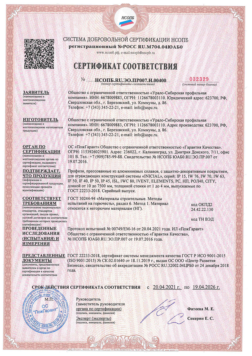 Сертификаты о соответствии INICIAL